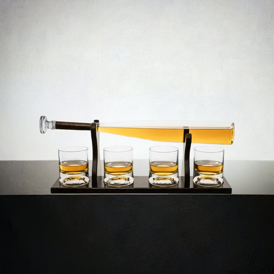 Elegant Rifle Gun Whiskey Decante 1000ml With 4 Bullet Whiskey Glasses and Mohogany Base